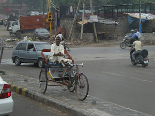 O trânsito em Dehli é muito desorganizado, ônibus, carros, bicicletas, pessoas e as moto-táxis dividem praticamente o mesmo espaço. O pisca-pisca não é utilizado, espelho retrovisor menos ainda (alguns carros nem os tem). Para identificar que está vindo alguém do lado ou atrás os motoristas utilizam-se da buzina. Todos buzinam o tempo todo. Ao entrar em uma esquina dificilmente alguém para, ele buzina para avisar que está chegando e entra na pista sem muita preocupação. A regra é que quem tem de cuidar são os outros e não você.